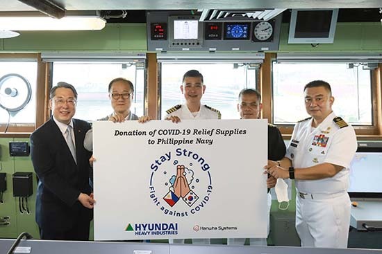 특히 현대중공업은 6.25전쟁 참전국인 필리핀에 보은하는 의미에서 마스크 2만개, 방역용 소독제 180통, 손 소독제 2,000개, 소독용 티슈 300팩 등의 방역물품을 이 함정에 선적해 출항시켰습니다.