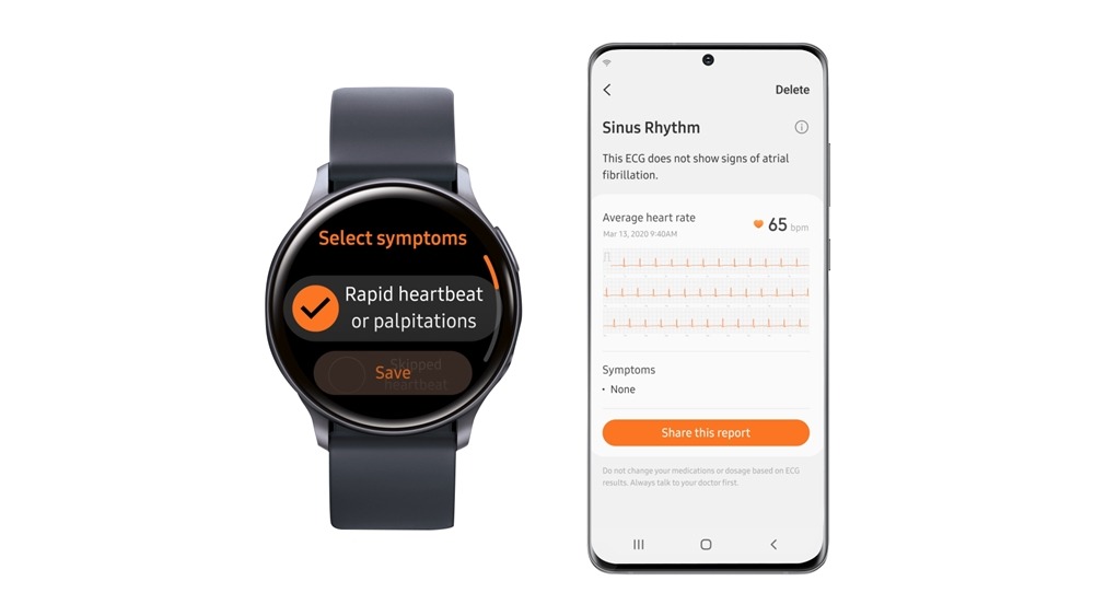 이번 식약처의 허가 조치로 사용자는 지난 4월 혈압 측정 앱 허가를 받은 ‘삼성 헬스 모니터’ 앱을 통해 혈압뿐 아니라 심전도도 간편하게 측정하고 관리할 수 있다. 심전도 측정 앱은 갤럭시 워치 액티브2의 센서 기술을 활용해 심장의 전기 활동을 분석하여 동리듬(Sinus Rhythm)과 심방 세동(Atrial Fibrillation)을 측정하고 분석하여 표시해 준다.