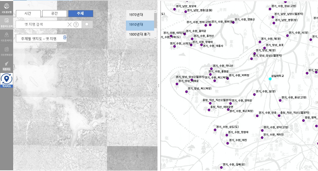 이를 위해 올해는 1910년 행정구역 지리정보 구축과 함께, 국토지리정보원의 1960~1970년대 지도 데이터를 제공받아 1970년대 남한 지역의 행정구역 지리정보를 구축할 예정이다.
