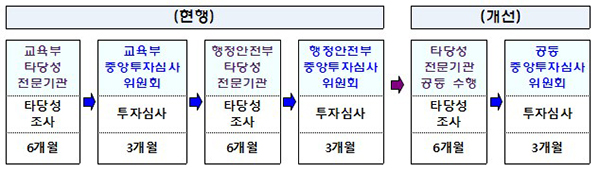 이에 행안부와 교육부는 공동투자심사위원회를 신설해 공동 심사하기로 개선했는데, 이 결과 약 3개월의 기간이 단축될 것으로 예상된다.