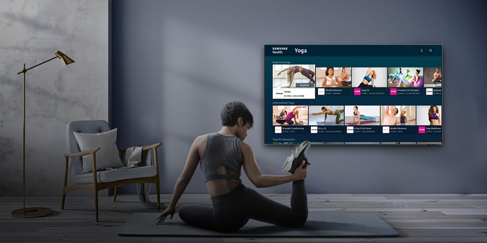 스마트 TV용 삼성 헬스는 사용자가 미리 설정한 난이도에 맞춰 유산소 운동·스트레칭·근력 운동·요가 등 고화질 홈 트레이닝 영상을 추천해줄 뿐만 아니라 명상과 수면을 돕는 마음 건강 챙김 콘텐츠도 제공한다.