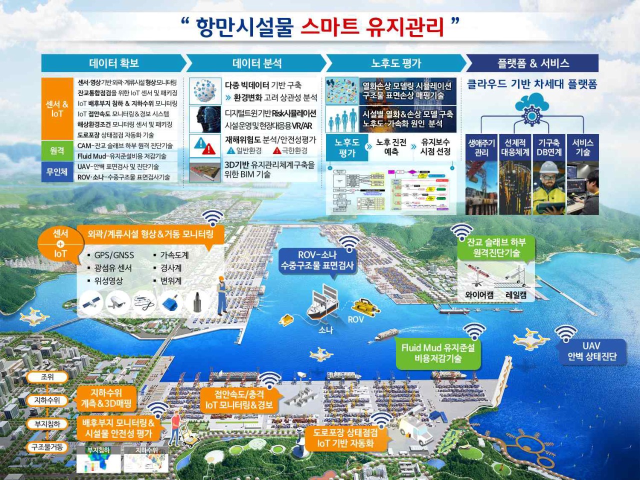 아울러, 4차 산업혁명 기술을 활용한 스마트 유지관리 관련 기술 개발과 현장 실증을 추진하고, 철도, 도로시설과 같이 항만시설도 유지관리 전문기관이 관리하는 체계로 전환하여 유지보수의 신속성과 전문성을 높일 계획이다.