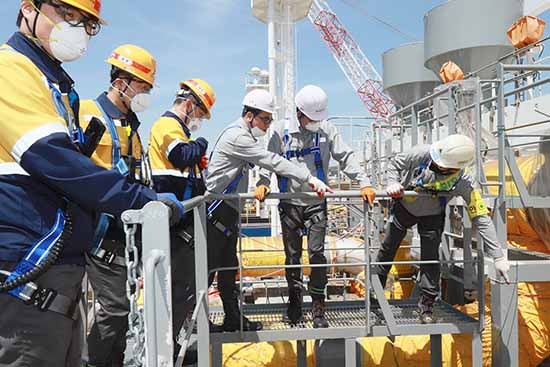 두 사장은 선박 전체를 구석구석 돌며 안전 위험요소가 없는지, 작업 시 안전수칙이 제대로 지켜지고 있는지 꼼꼼히 점검하고, 안전 문제가 예상되는 부분에 대해 즉각적인 개선을 지시했습니다.