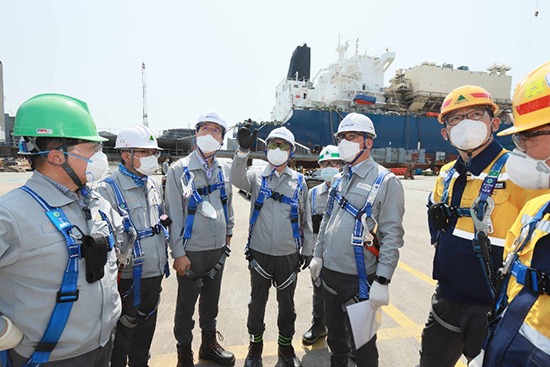 권오갑 회장은 지난 8일(월) 그룹 조선 3사 대표들과 함께 선박 건조 현장을 직접 둘러보며 근로자들의 안전을 점검하고 경영진들에게 안전경영의 철저한 이행을 지시했습니다.