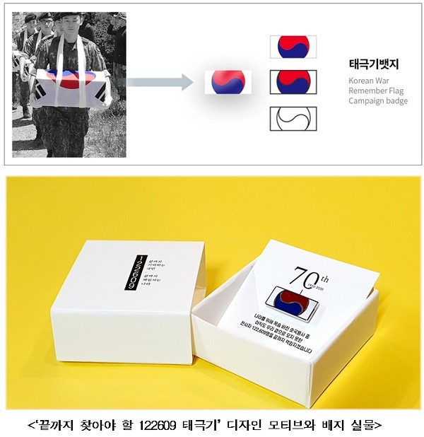 6·25전쟁 70주년 사업추진위원회(이하 위원회)는 8일부터 6·25전쟁 70주년을 맞는 올해까지 유족들의 품으로 돌아오지 못한 국군 전사자 12만 2609명의 호국영웅을 기억하는 태극기 배지 달기 대국민 캠페인 ‘끝까지 찾아야 할 122609 태극기’를 진행한다.