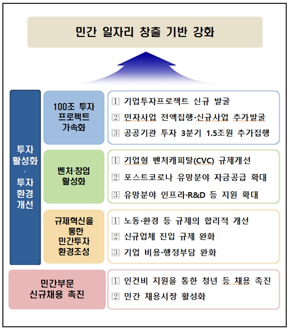 또한, 이미 발굴 기업투자프로젝트(1~6단계, 총 35조원) 중 올해 착공 예정 투자가 차질없이 집행되도록 점검해 민간 고용확대를 도모한다.