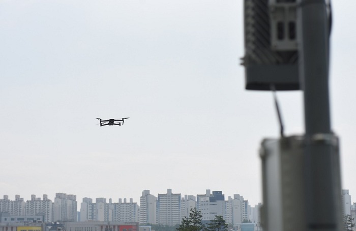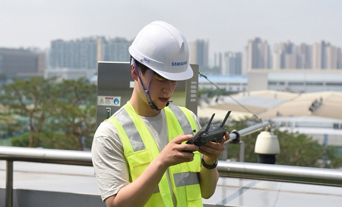 삼성전자는 다수의 5G 기지국과 안테나가 설치되어 있는 수원 디지털시티에서 드론을 이용해 기지국과 안테나 시스템 설치 상태를 촬영해 서버에 전송한 후, 인공지능을 활용해 기지국과 안테나가 최적의 각도로 유지되고 있는지 분석해 현장 작업자에게 실시간으로 전송해주는 솔루션을 시연했다.