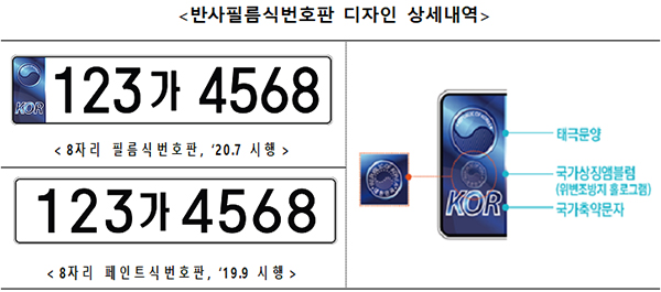 또 새 번호판에는 재귀반사식 필름이 부착된다.