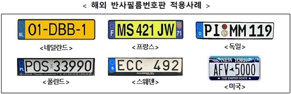 또 재귀반사 원리를 이용한 필름식번호판은 유럽·미국 등 대부분의 OECD 국가들이 채택하고 있는 방식으로 야간 시인성 확보에 유리해 교통사고를 줄이는 데 효과가 있다는 평가를 받고 있다.