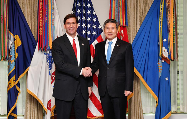 에스퍼 장관은 한측의 코로나19 대응이 효과성과 투명성에 있어 모범이 되고 있음을 강조하였습니다.