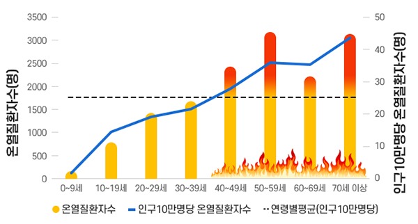 특히 고령일 경우 온도에 대한 신체적응능력이 낮고, 심뇌혈관질환이나 당뇨 등 만성질환자도 온열질환과 코로나19 모두에 취약하므로 더더욱 주의가 필요하다.