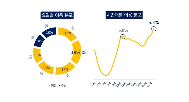 회원들이 가장 쇼핑을 즐기는 요일은 화요일, 오후 11시대 사용액 최고… 주말은 사용액 낮아져