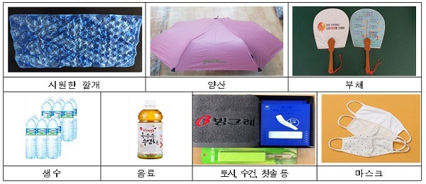 시민단체(한국기후·환경네트워크), 기업, 한국환경산업기술원이 전국 53개 시군구의 취약가구(기초생활수급자, 홀몸어르신 등) 2000곳에 생수와 시원한 깔개, 토시, 수건, 부채 등의 폭염대응물품을 지원하고, 폭염행동요령을 안내한다.