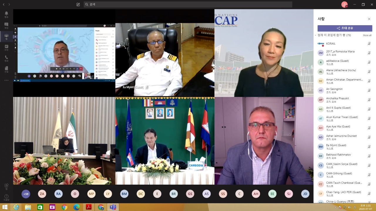 한국철도(코레일)가 7일부터 8일까지 열린 유엔 아시아태평양경제사회위원회(UN ESCAP)와 국제철도협력기구(OSJD)가 공동 주관한 화상세미나(웨비나, Webinar)에 참여해 철도 분야 코로나 대응 경험을 공유했다.