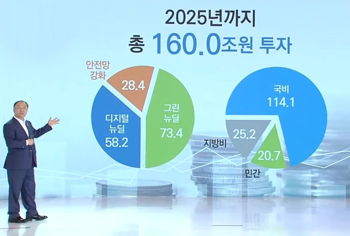 정부가 한국판 뉴딜에 2025년까지 총 160조원을 투자해 일자리 190만개를 만들기로 했다.