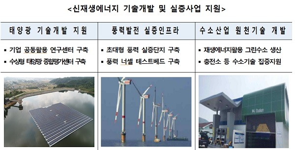 국내 시장확대가 산업 생태계 성장으로 이어지도록 태양광·해상풍력·수소·수열 분야 핵심 R&D 및 연구인프라 구축도 지원한다.