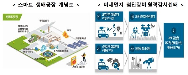81개 산단 대상으로 기업간 폐기물 재활용 연계를 지원하고 미세먼지, 온실가스 등 오염물질 배출을 최소화하기 위해 스마트 생태공장 (100개소)과 클린 팩토리 (1,750개소) 구축 사업을 추진한다.
