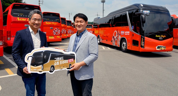 기아자동차는 16일 경기도 평택시 소재 뉴부자관광 차고지에서 기아자동차 B2B사업실장 윤승규 상무, 뉴부자관광 원동호 대표 등 관계자들이 참석한 가운데 ‘그랜버드 슈퍼 프리미엄(Super Premium)’ 1호차 전달식을 가졌다.