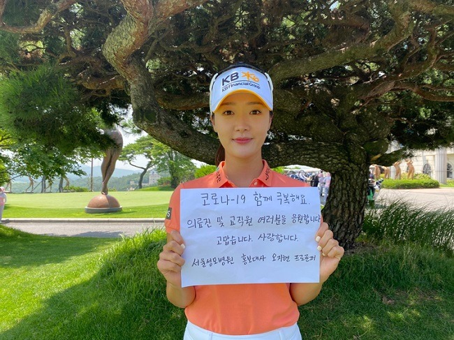 가톨릭대학교 서울성모병원 홍보대사로 활동중인 한국여자프로골프협회(KLPGA) 메이저 퀸 오지현 프로골퍼(KB금융그룹)가 코로나-19로 고생하는 의료진과 교직원에게 응원의 메시지를 전했다.