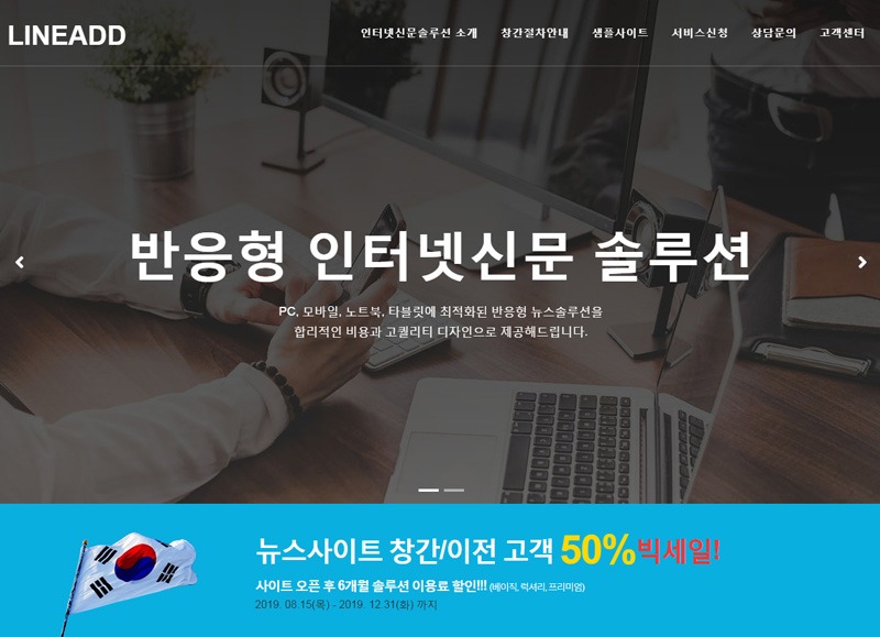 인터넷신문솔루션 전문업체 라이네드(www.lineadd.co.kr)가 2019년 8월 15일부터 파격적인 할인 행사를 진행한다고 밝혔다.