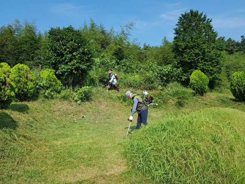 무덤주위랑 모두요. 꽃이나 다른 잡목의 나무가 있다면 그것도 잘라주어야겟죠? 그리고 무덤과 무덤 주위뿐만 아니라 가는 길목의 풀도 잘라주더라구요. 대개 나무는 건드리지 않지만, 무덤의 1-2m 근방에 있는 나무라면 나무의 뿌리가 자라서 무덤안의 관을 뚫을 수가 있기 때문에 뿌리채 뽑아주어야 합니다.