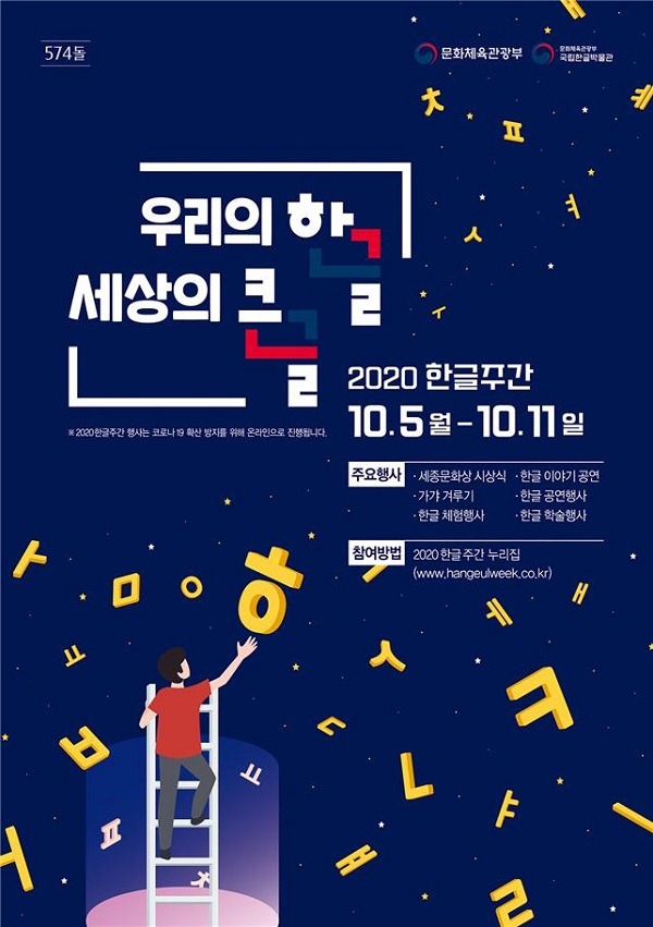 ‘2020 한글주간’의 주제는 ‘우리의 한글, 세상의 큰 글’이다.
