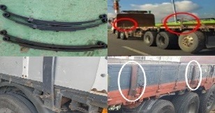 최근 일부 화물차에 화물 적재 시 적재장치가 옆으로 벌어지는 것을 방지하기 위해 자동차 완충장치(판스프링)를 지지대로 불법 설치하는 사례가 발생하는 것으로 파악되었다.