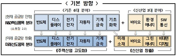 미래 공급망 창출·선점을 위해 R&D 핵심품목 9대 분야와 연계, 향후 5년 뒤 주력산업 고도화와 신산업 창출을 견인할 ‘미래선도품목’을 산·학·연·관 TF를 구성·발굴하고 R&D 사업 기획 및 투자로 이어나갈 예정이다.