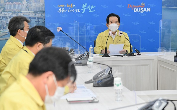 정세균 국무총리는 16일 최근 요양병원 코로나19 집단감염이 발생한 부산을 찾아 중앙재난안전대책본부 회의를 주재하고 환자 치료와 방역에 만전을 기해줄 것을 당부했다.