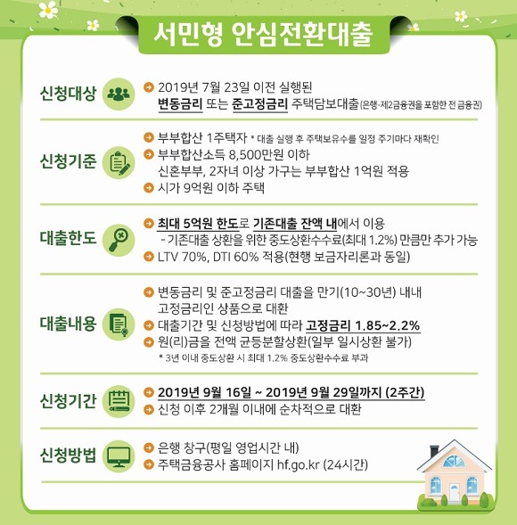 기존 변동금리나 준고정금리 주택담보대출을 최저 연 1%대의 장기 고정금리로 갈아탈 수 있는 ‘서민형 안심전환대출’이 내달 16일에 출시된다.