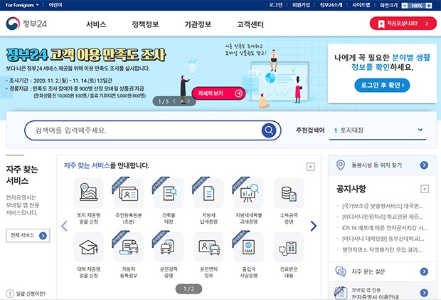‘정부24’는 민원서류 발급 및 다양한 행정서비스와 정책정보를 통합 제공하는 정부 서비스 대표 포털로 지난 2017년 7월 개통해 현재 1560만 명의 회원이 이용하고 있으며, 우리나라가 OECD 디지털정부 종합평가에서 1위를 달성하는 데 큰 역할을 했다.