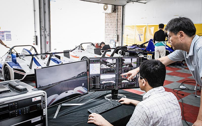 시속 210km로 고속 주행하는 레이싱카 운전석 등 4개 화면은 차세대 5G기술을 통해 스마트폰 à 28GHz 기지국 à 중계 시스템을 거쳐 차고지(Team Pit)로 멀티뷰(Multi-View) 생중계됐다. 레이싱 스탭들은 다양한 각도로 중계되는 화면을 통해 운전자 시각으로 차량에 탑승한 듯한 경험을 생생하게 느낄 수 있었다.