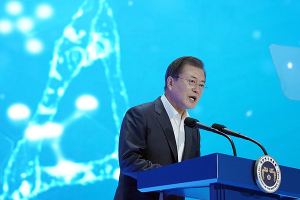 문 대통령은 “2025년까지 민간과 함께 4만7000여 명의 바이오산업 인재를 양성하겠다”며 “의약품, 의료기기, 헬스케어와 같은 분야별 전문인력뿐 아니라 데이터와 인공지능 활용인력도 적극 육성하겠다”고 말했다.