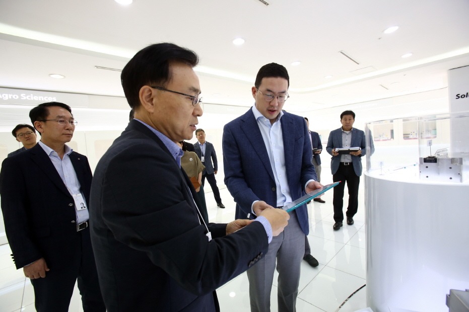 이날 방문에는 노기수 LG화학 CTO(사장), 김명환 LG화학 배터리연구소장(사장) 그리고 권영수 ㈜LG 부회장, 안승권 LG사이언스파크 대표(사장) 등이 동행했다.