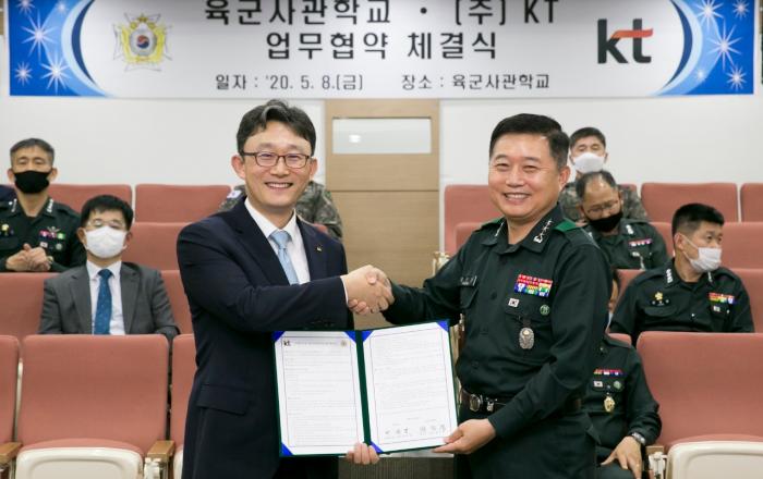 KT(www.kt.com)는 8일 육군사관학교와 서울 노원구에 위치한 육군사관학교 본관에서 4차산업혁명 핵심기술을 활용한 첨단 스마트캠퍼스 구축과 군 정보화를 위한 업무협약(MOU)을 체결했다고 10일 밝혔다. 협약식에는 박윤영 KT 기업부문장과 정진경 육군사관학교장
