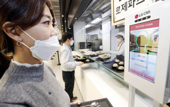 LG CNS가 AI와 블록체인, 클라우드 등 3대 IT 신기술을 결합한 '안면인식 커뮤니티 화폐' 서비스를 선보였다. 3대 IT 신기술을 융복합한 서비스가 공개된 것은 국내 최초다. AI 안면인식 기술로 직원의 신원을 파악한 후, 미리 등록된 블록체인 기반의 커뮤니티