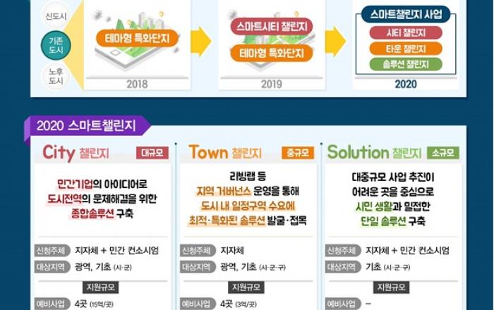 2020년부터 기업‧시민‧지자체가 함께 고민하고, 만들어가는 스마트시티 사업을 본격적으로 추진한다.국토교통부는 기존도시를 스마트시티로 탈바꿈하기 위한 「스마트챌린지 사업」을 새롭게 출범하고, 이달 17일부터 공모에 착수한다.스마트챌린지는 기존도시에 스마트솔루션을 구축하