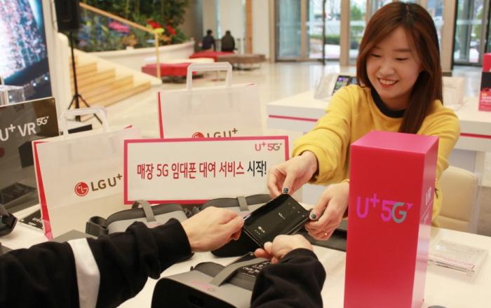 LG유플러스는 13일부터 업계 최초로 매장에서 5G 임대폰 대여 서비스를 시작한다고 12일 밝혔다. 5G 스마트폰 이용 고객을 위해 지난 10월부터 공식 홈페이지(www.uplus.co.kr)를 통해 업계에서 처음으로 택배 발송 방식의 5G 임대폰 대여 서비스를 운영해