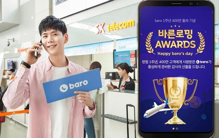SK텔레콤이 국내 최고 로밍 서비스로 자리매김한 baro 출시 1주년과 누적 이용자 400만 명 돌파를 기념해 14일부터 내년 1월말까지 ‘바른 로밍 프로모션’을 실시한다.SKT baro는 지난해 12월 출시 이후 1년간 총 통화 누적 8천만 콜을 넘었고, baro 이