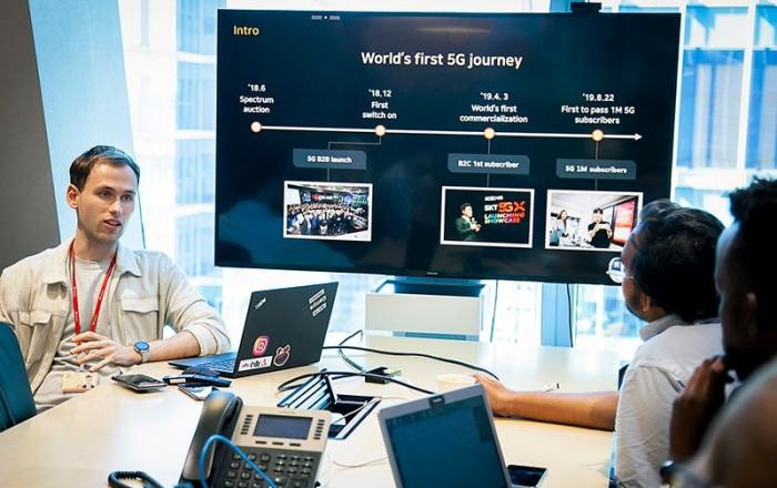 SK텔레콤이 ‘글로벌 넘버 원 5G’를 배우기 위해 서울을 찾은 세계적인 ‘혁신 대학’ 미네르바 스쿨 학생들과 5G · AI 관련 신사업 · 기술 개발에 머리를 맞댄다.SK텔레콤은 ▲5G 신사업 개발 ▲5G 및 AI 기반 언어습득 솔루션 등 5개 과제에 대해 미네르바