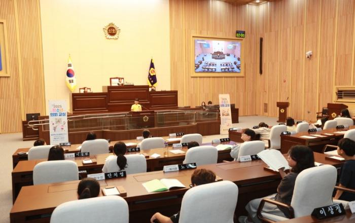 충북도의회(의장 이양섭)는 30일 본회의장에서 충주 대림초등학교 학생 32명이 참여한 가운데 제126회 청소년 의회교실을 운영했다고 밝혔다.청소년 의회교실은 학생들이 1일 도의원이 되어 본회의장에서 의장 선거, 안건 처리, 2분 자유발언 등 실제 의정활동을 직접 체험할