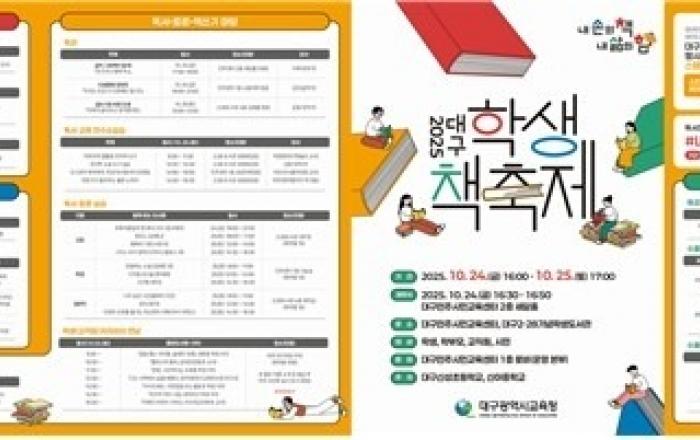 대구시교육청이 학생과 학부모, 교직원이 함께 책으로 소통하며 독서문화를 확산하기 위한 ‘2025 대구 학생 책축제’를 10월 24일(금)부터 25일(토)까지 대구민주시민교육센터와 대구2·28기념학생도서관에서 개최한다.■ 지역 대표 독서인문 축제, ‘내 손의 책, 내 삶