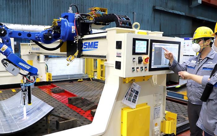 대우조선해양이 전세계 조선업 최초로 열간가공(熱間加工) 작업에 인공지능 기술을 접목한 로봇 시스템을 적용한다.대우조선해양(대표이사 이성근)은 작업환경을 개선하면서 표준화된 빅 데이터와 인공지능 기술을 활용해 저숙련자도 고품질의 제품을 생산할 수 있는 인공지능형 열간가공