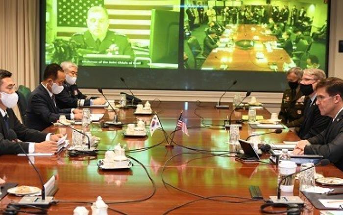 한미 국방장관은 14일(현지시간) 전시작전통제권 전환과 관련해 “한미 공동의 노력을 통해 전작권 전환 조건 충족에 커다란 진전이 있었음에 주목했다”며 “보완 및 지속능력에 대한 공동연구를 통해 전환조건 충족 노력을 지속해 나가기로 했다”고 밝혔다.서욱 국방부 장관과 마