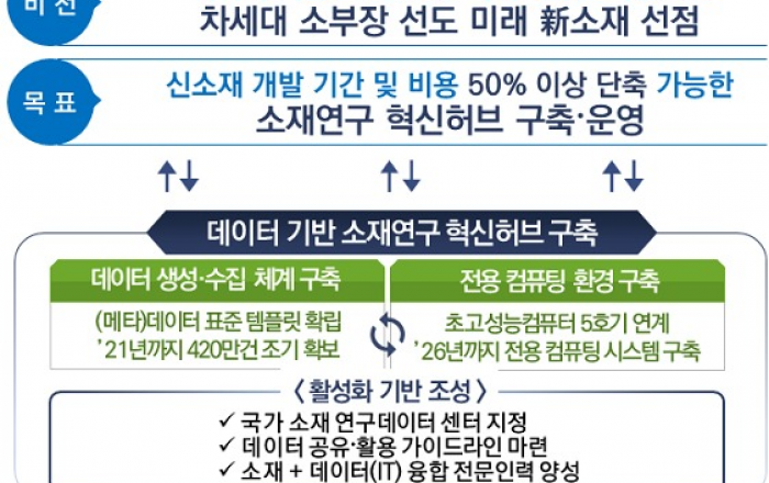 데이터·인공지능(AI)을 소재연구에 접목해 실험 및 이론에 의한 시행착오를 최소화하고 신소재 개발기간을 단축하는 방안이 추진된다.과학기술정보통신부는 14일 제5차 소재·부품·장비 경쟁력강화위원회를 통해 ‘데이터 기반 소재연구 혁신허브 구축·활용방안’을 확정, 본격 추진