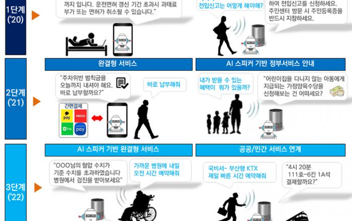 오는 26일부터 ‘지능형 국민비서 서비스 구축(1단계)’과 ‘범정부 민원상담 365(챗봇 공통기반) 구축(1단계)’ 등 지능형 서비스 구축사업을 본격적으로 착수한다고 25일 밝혔다. 이번 1단계 구축사업이 끝나면 국민은 혜택을 받을 수 있는 공공서비스와 자칫 놓치기
