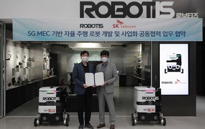 5G MEC 글로벌 리더 SK텔레콤과 로봇 전문 기업 로보티즈가 5G MEC 자율주행 로봇 개발에 함께 나선다.SK텔레콤은 로보티즈와 ‘5G/MEC기반 자율주행 로봇사업 협력 MOU’를 체결했다고 4일 밝혔다. 이번 협력은 5G와 MEC기술의 선두에 있는 SK텔레콤과