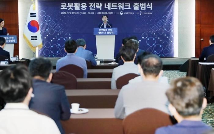 정부와 산학연 전문가들이 로봇활용 전략 네트워크를 출범시키고, 전산업의 디지털 전환등을 위한 로봇활용 전략을 마련하기로 했다. 산업통상자원부는 23일 서울 한 호텔에서 ‘로봇활용 전략 네트워크’ 출범식을 열었다고 밝혔다.▲ 강경성 산업통상자원부 산업정책실장이 23일