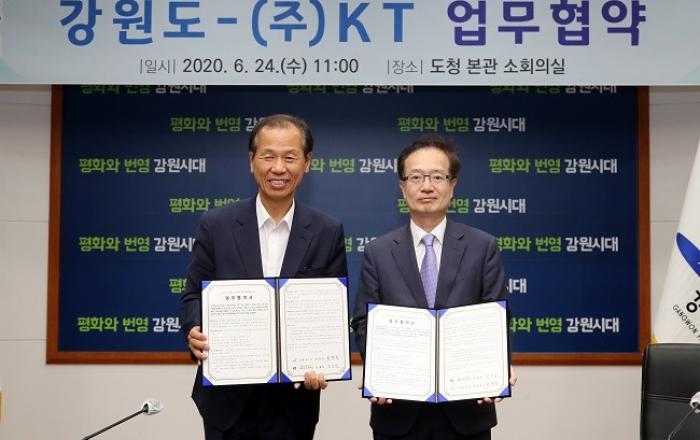 KT가 강원도와 24일 춘천시에 위치한 강원도청에서 ‘빅데이터 기반의 도민 만족 행정 활성화를 위한 업무협약(MOU)’을 체결했다고 밝혔다. 협약식에는 KT AI/DX 융합사업부문장 전홍범 부사장, 강원도 최문순 도지사 등 양 기관의 주요 관계자들이 참석했다. 이번