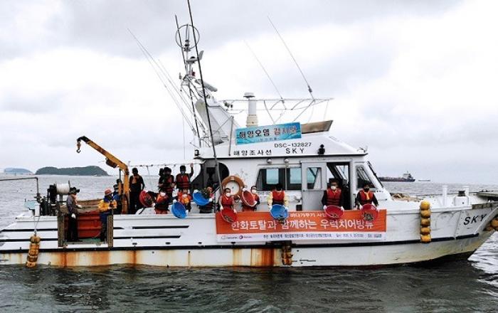 한화토탈이 대산공장 인근 해안에 지역 어민들과 함께 치어를 방류하며 충남 서산∙대산 앞바다의 바다생태와 어족자원을 보호하고 지역경제 활성화에 기여하는 일석이조 지역상생 행사를 가졌다.한화토탈은 25일 대산공장 인근에 위치한 삼길포 앞바다에서 지역어민 및 관계자와 회사
